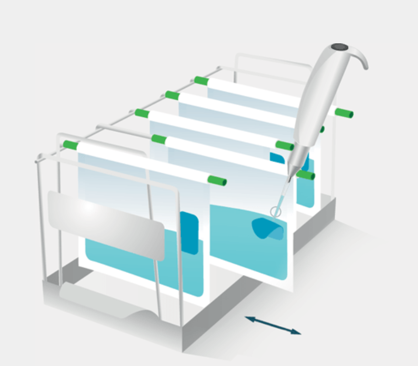 BagFilter Pipet associated with BagRack Slide improves your workstation. Timed pipetting is optimized without the risks of R.S.I..