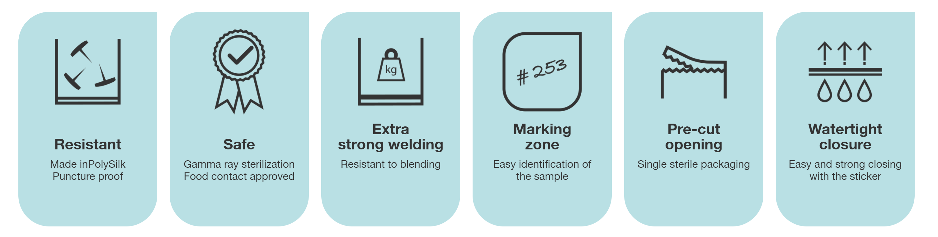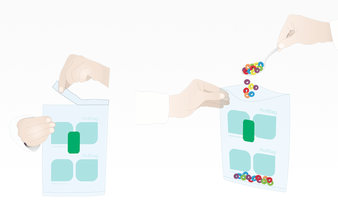 The RollBag sampling bag allows sampling directly in the field or in the production area and to transport the sample safely and sterile to the analysis laboratory. It can also be used for storage in a freezer or incubator and integrates very well into the analytical workflow for sample analysis.
