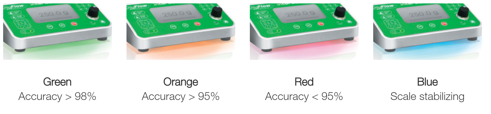 LightCode is a bright and intuitive indicator of the status of dilution. It allows you to check the accuracy at a glance.