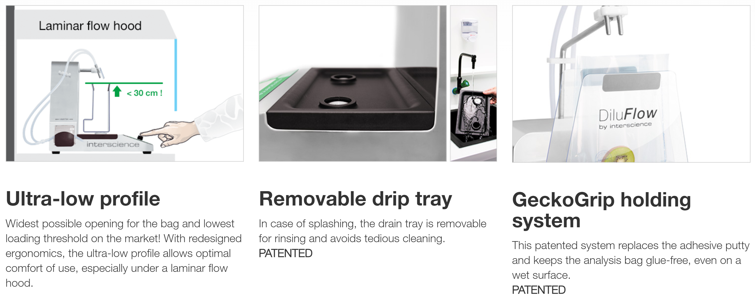 With the press of only 2 keys, the DiluFlow gravimetric dilutor provides an accurate dilution of all types of samples from 5 to 300 g (at 1/10th). In compliance with ISO 7218 and ISO 6887.