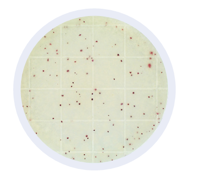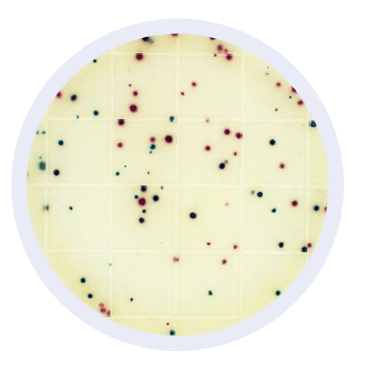 The Enterobacteriaceae bacteria are a family of gram negative bacteria encompassing coliform, E. coli, Shigella, Salmonella, and Yersinia. These bacteria indicate unsanitary conditions in raw products and are killed by heat steps in food processing. EB testing is used as a post-production verification of process and pathogen risk used, for example, to test dry milk powder and infant formula. EB is regulated globally, similar to coliform/E.coli regulation in the US. Incubation 24 to 48 hours at 37°C produce multiple colored round growth spots that are all recorded as EB. High Volume plates are available. Visit the Peel Plate EB test page to learn more.